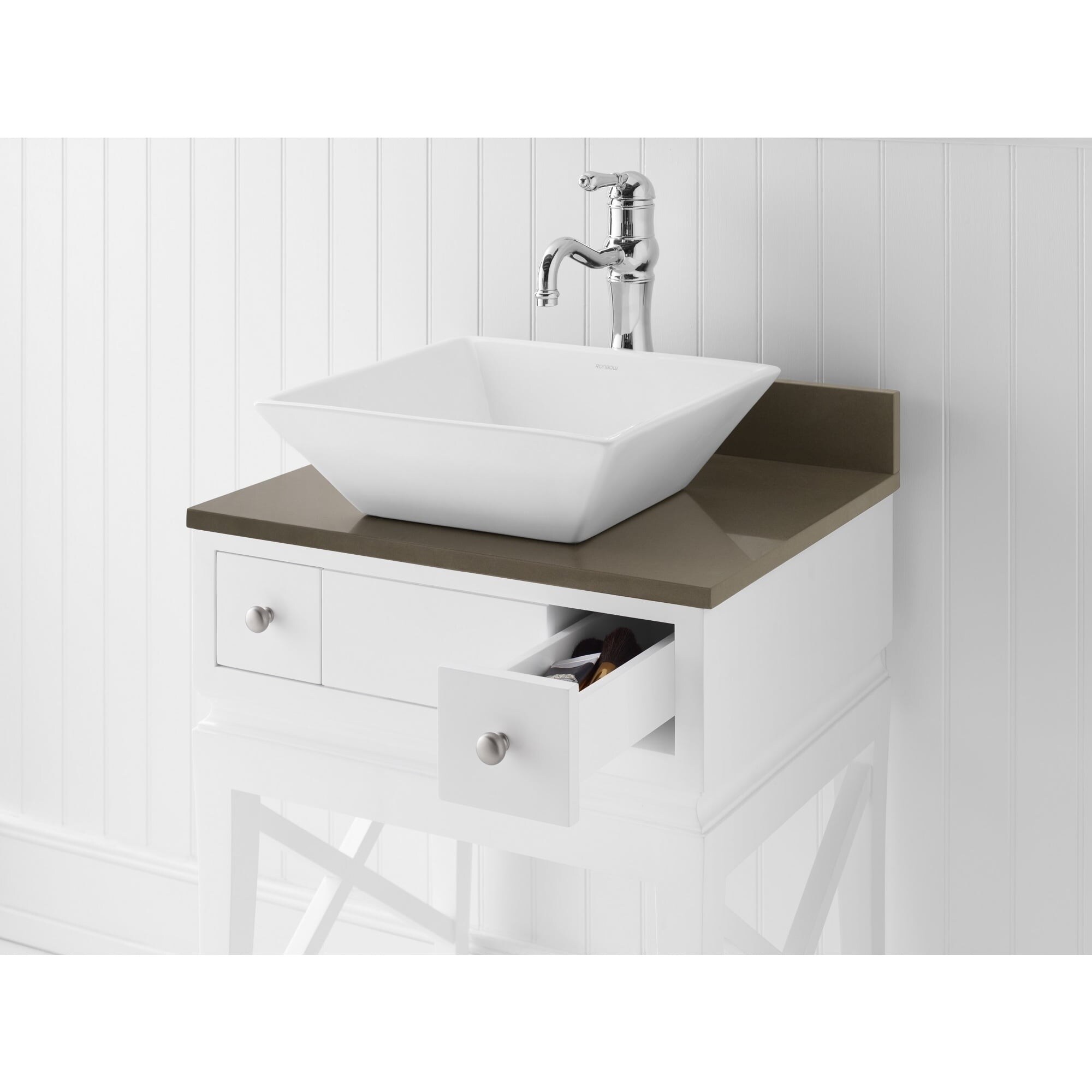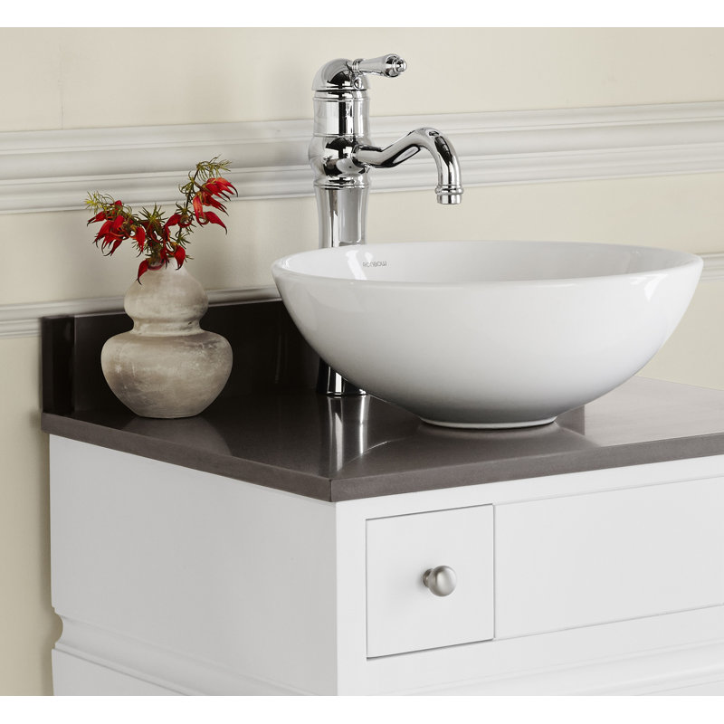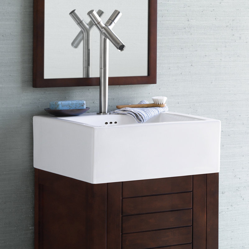 Matches the Rainbow vanity base extremely well. It can sit across the edge of the sink if desired. I am using it with a farm house sink that is mounted partially above the top of the Ranbow vanity base, it will across the back and side top sink edge. Ronbow Rectangle Ceramic Undermount Bathroom Sink When you buy a Ronbow Imprint Ceramic Rectangular Vessel Bathroom Sink online from Wayfair.ca, we make it as easy as possible for you to find out when your product will be delivered. Read customer reviews and common Questions and Answers for Ronbow Part #: E012009-WH